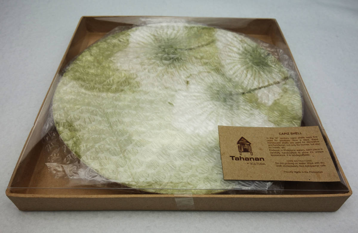 フィリピンの高級雑貨専門店「KULTURA」のカピス貝で作ったトレイです。 「KULTURA」は日本語で文化(カルチャー)の意味で、 フィリピンの独特な日本では中々見られない現地の商品を取り扱っているお店です。 日本人だけでなく、世界中の観光客にも大変人気の高いお店です。 サイズ: 直径:約22.8cm 高さ:約2.0cm 重さ: 約170g ・ハンドメイドの商品について 一つ一つ丁寧に手作りしてますので、写真とは多少の差異がある場合が御座いますが、 そこがハンドメイドの魅力でもあります。 アジアン雑貨特有の小さなキズやヒビ・色むら等は、ご理解頂ければと思います。 |