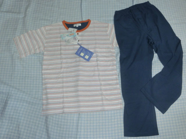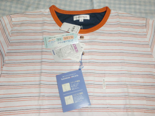 定価3980円 色は白、オレンジ、水色、こげ茶のボーダー パンツは紺 素材:綿60%ポリエステル40% 首ゴム綿60%ポリエステル35%ポリウレタン5% サイズS 股下丈64.5cm 他にも洋服、バッグ、靴、小物、本を出品していますので見てください。