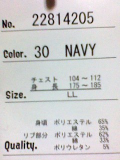 サイズ チェスト104~112 身長175~185