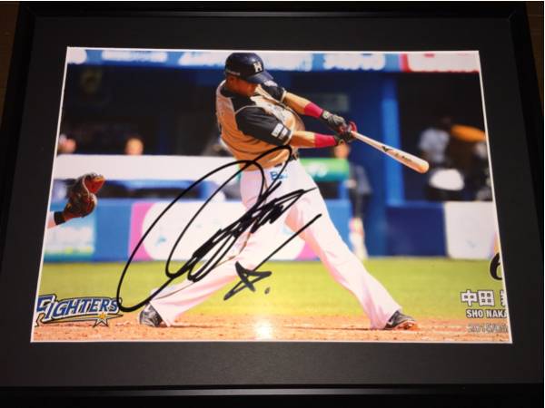 北海道日本ハムの中田翔選手の直筆サイン入りA4サイズの生写真額装品です。(額の種類は多少変わる事がございます。)