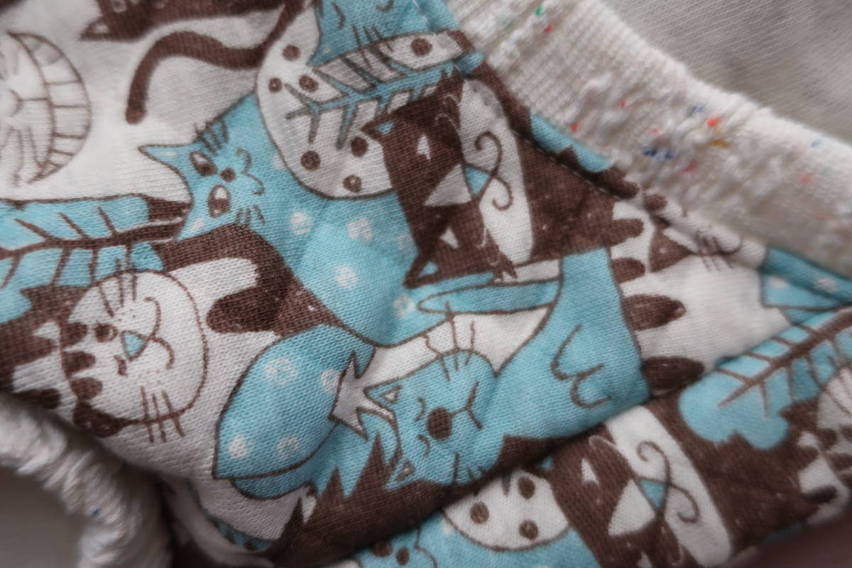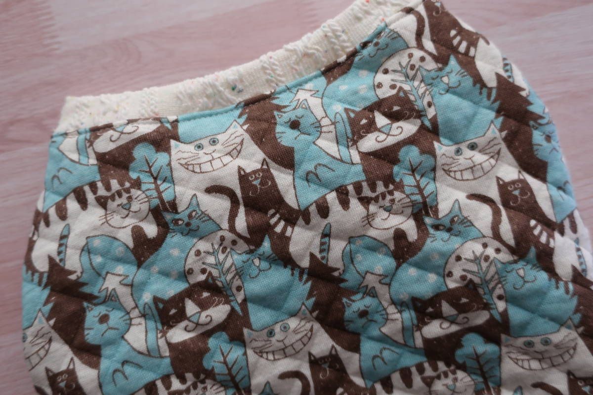 家庭用ミシンで作っているため、ニットの毛羽立ちがあります。