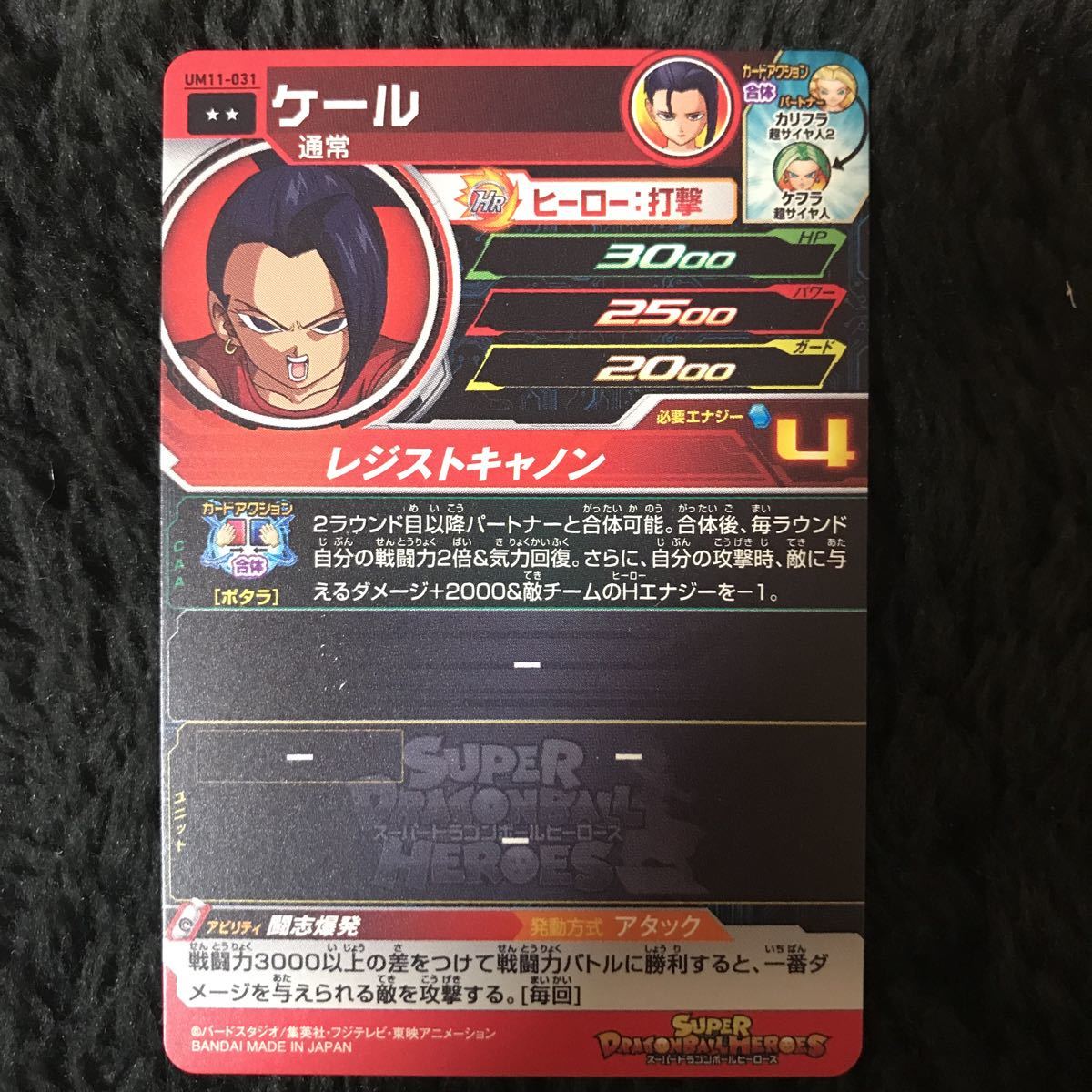 UM11弾レア/ ケール(通常)/ UM11-031/ 技:レジストキャノン/ スーパードラゴンボールヒーローズ/ レアリティ:☆☆/ BANDAI