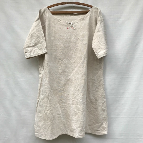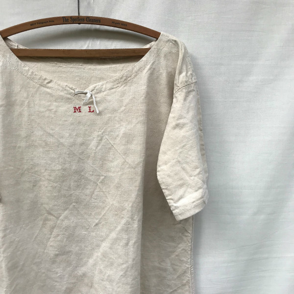 アンティーク リネン ワンピース フランス ハンドメイド イニシャル 刺繍 厚手 ANTIQUE LINEN FRANCE 40s 50s 60s