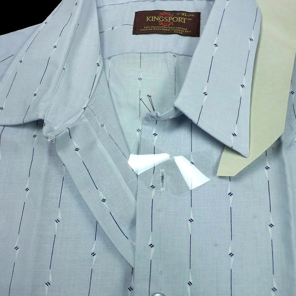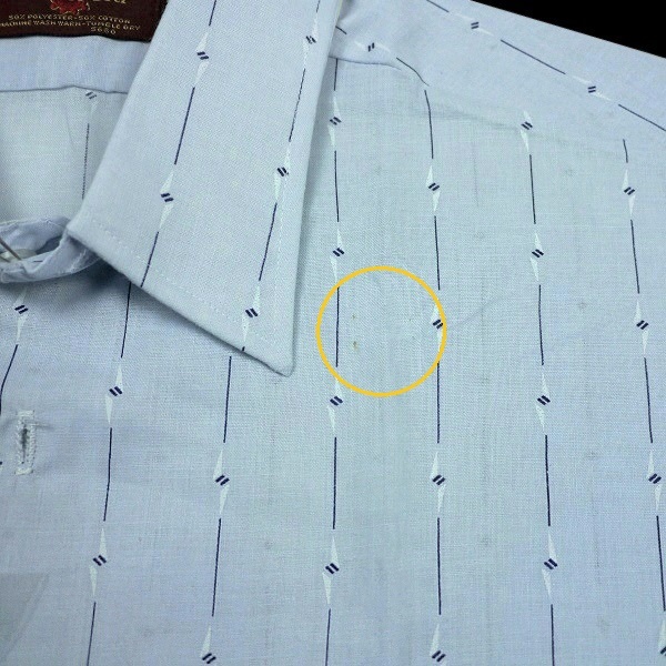 ・アメリカで購入したキングスポーツの半袖シャツです。 1970年代, 薄水色、柄は紺白、 見返し耳付き、襟芯入り、 左胸1ポケット,,,etc 生地は透け感のあるポリコットン生地、生産はタグに国表示が入る前ですのでアメリカ製だと思います。 希少なデッドストック! これからの経年変化も存分にお楽しみいただけます。 一般的なシャツタイプですが裾はボックス型ですので街着としても着易いです。 ・状態はデッドストックです。 元袋や台紙 虫ピン付属、(袋に破れや汚れあり) 目立ちませんが右袖と左横に織傷?伝線あと?、左肩下 前後にピン留めの錆汚れあとあり。 他、保管に伴うシワはご理解をお願いします。 -------------------------------------------------------------------------------------------- ・サイズ表記 XL 17-17.1/2 *実寸参考下さい 着丈(襟下‐裾先) 73cm 肩幅(左肩‐右肩) 52cm 身幅(左脇‐右脇) 66cm、最小63cm 袖丈(脇下‐袖先) 20cm 袖丈(肩口‐袖先) 27cm -------------------------------------------------------------------------------------------- ・稀に急な出張等で留守になる場合ございますがわかり次第 自己紹介欄に記載しますのでお手数をおかけしますが入札前に一度 ご確認をお願い致します。 ・品物はアメリカ、ヨーロッパなど海外で購入したもので一度、洗浄またはクリーニング、レザーアイテムなどはメンテナンスを施しておりますが主にビンテージ、アンティークアイテムの為 デッドストックなどの未使用品も含め何らかの経年変化、使用感などございます。 ・状態確認は十分注意を払い行っておりますがお伝えしきれない細かな汚れや小さなダメージなどの見落とし、実寸のわずかな誤差、お使いのモニター設定により色味の違いなど生じる場合がございます。 ご理解頂きまして不明な箇所ありましたら入札前にご質問ください。 |