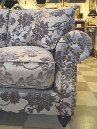 *新品*高級*3シートソファ*ブルーイッシュグレー*サテン調*3人掛け*