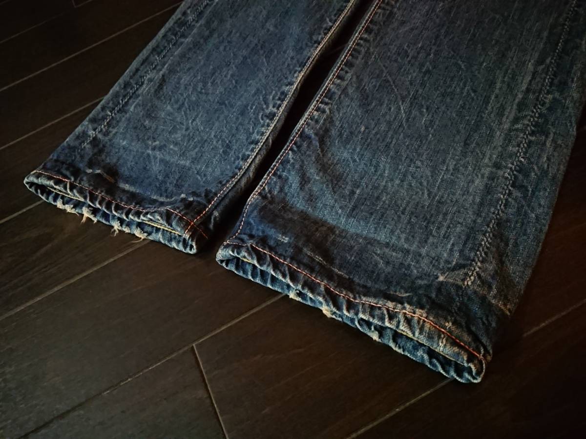 もともとふんだんな加工が施された商品です♪加えて、経年・使用による色落ち・摩れ・解れ・薄汚れ・シミ・経年加工の拡大等々、全体に相応の使用感のある中古品でございますので、商品コンセプトを理解できない方、古着に不慣れな方、神経質な方はご入札をお控えください