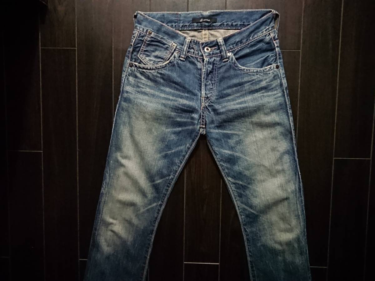 上質なウォッシュ&ダメージ加工が施された、色落ちが美しい濃い目のインディゴブルー♪上質な素材感と風合いが見事です