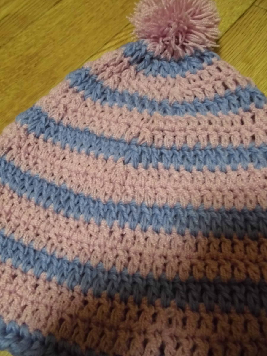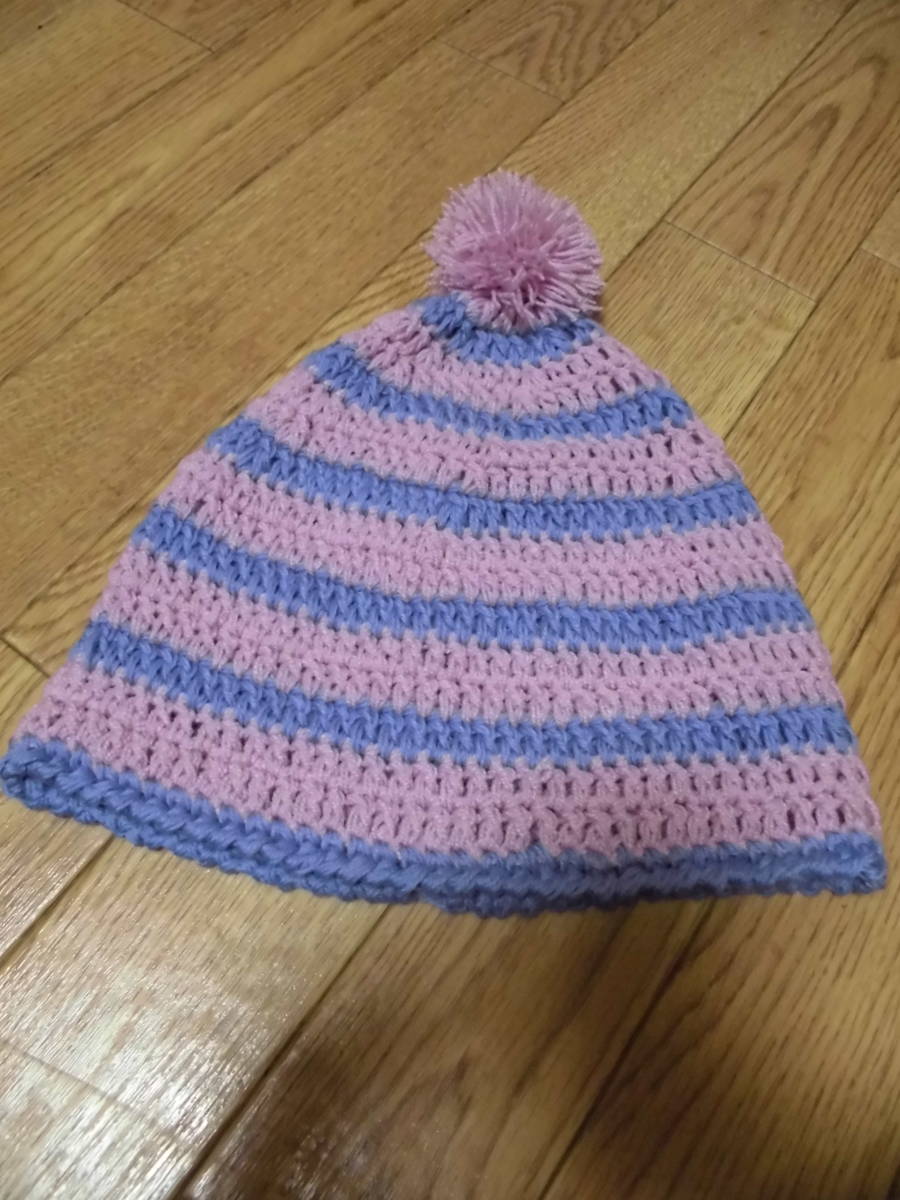 ハンドメイド 手編み ニットキャップピンク 藤色