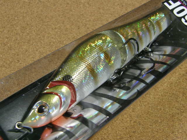 ウェイトバランスを追求した4分割ボディが圧倒的な飛距離と今までにない未知の動きを発生させる。まるでヘビの様な艶めかしさを持つ動きからスネークロールと名付けた。フロントとリアのフック間に装備された、きし麺形状のフラッシングブレード「タリアテッレ」はアクション発生時のシルエットに同調し、細かいフラッシングでボディ全体に生命感を与えバイトマーカーの役割を果たす。リトリーブ、ジャーク、ストップ...全てのアクションを得意とするバーサタイル性能を持つビッグジョイントミノー。