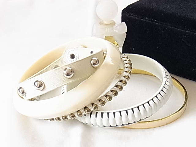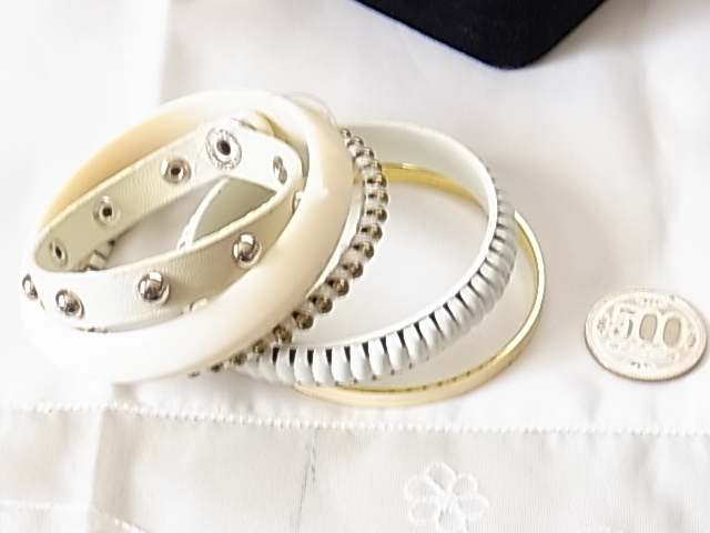 お得な5本セット ホワイト系のカラー 皮革も入ってます まとめて着けても バラで着けても ブレスレット◎◎