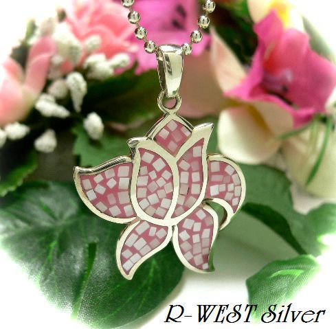 シルバー925銀のシェル貝殻入り ピンクフラワー ペンダント