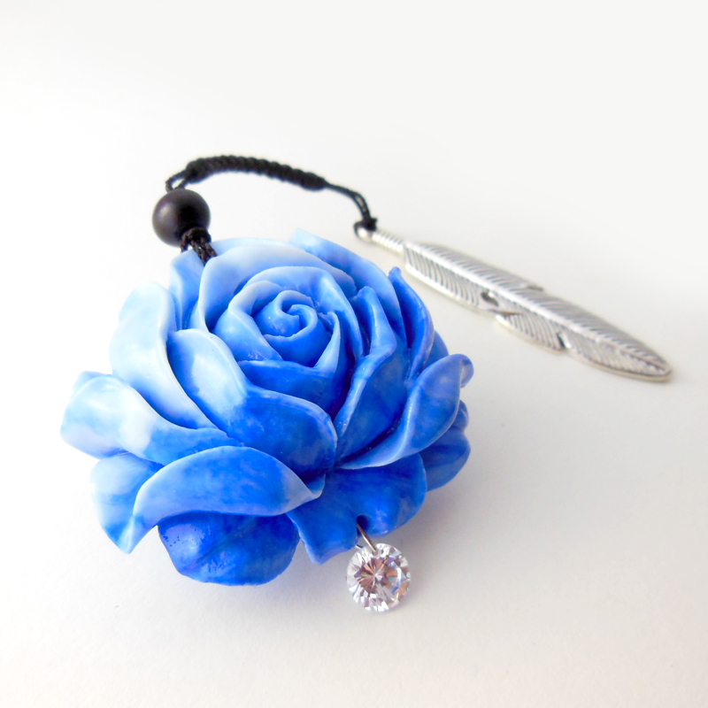 シャコ貝を機械彫刻し、墨流し染色で作り上げた、美しい薔薇の和モダン帯飾りです♪