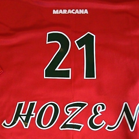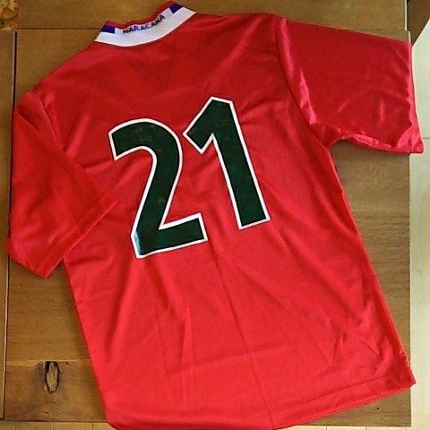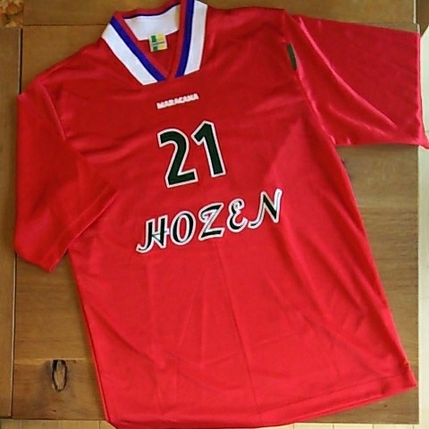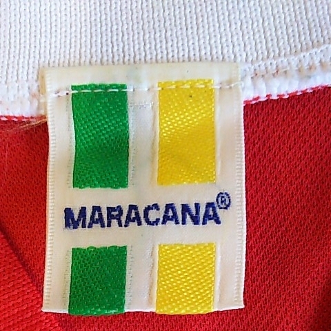 s781 保善高校!■MARACANA■ 日本製 サイズL~XLくらい 赤系 半袖ゲームシャツ 身幅54 着丈76.5 肩幅47.5 袖丈32 ゆうパケ発送可能!