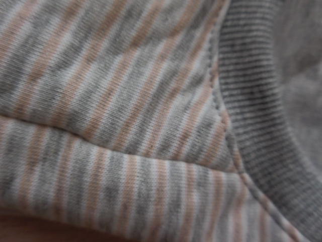 家庭用ミシンで作っているため、ニットの毛羽立ちがあります。