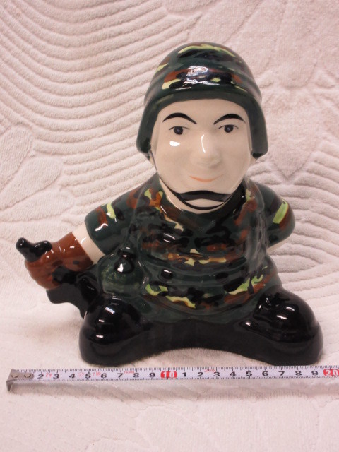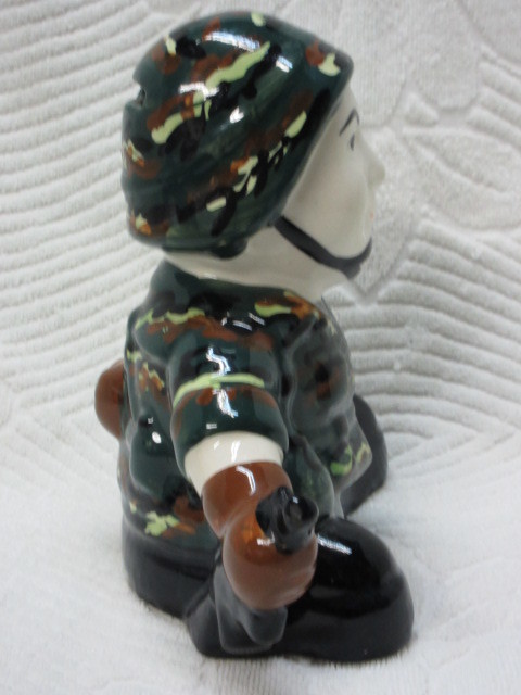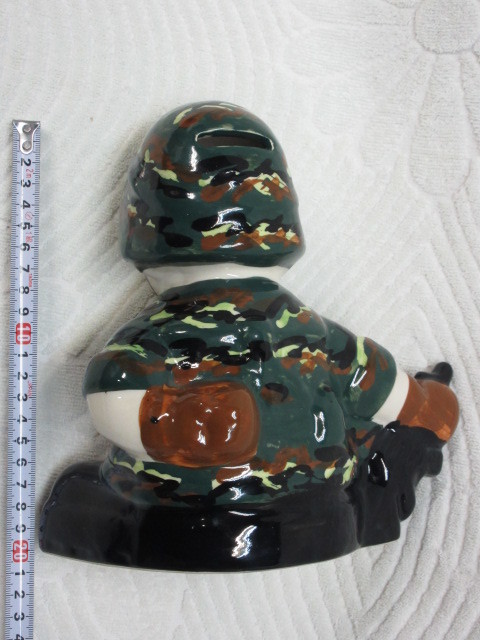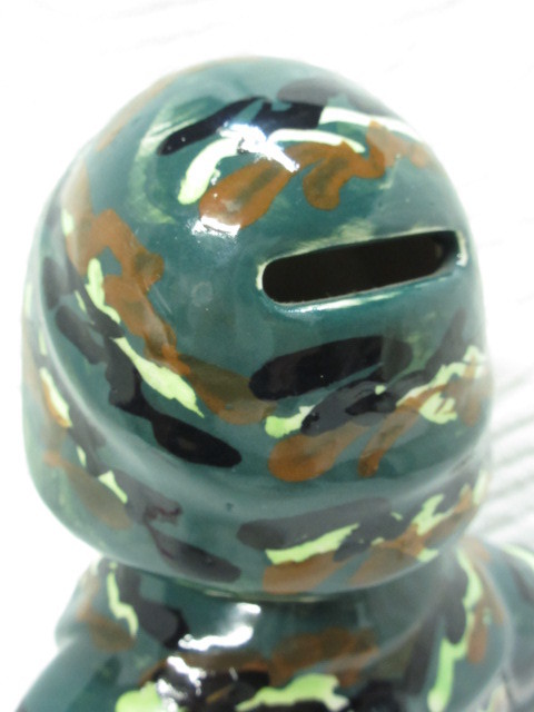 即決 昭和レトロ 兵隊 陶器 貯金箱 20cm 迷彩 兵士 アーミー人形 サバゲー 自衛隊?自衛官? ミリタリー ハンドペイント セラミック ドール