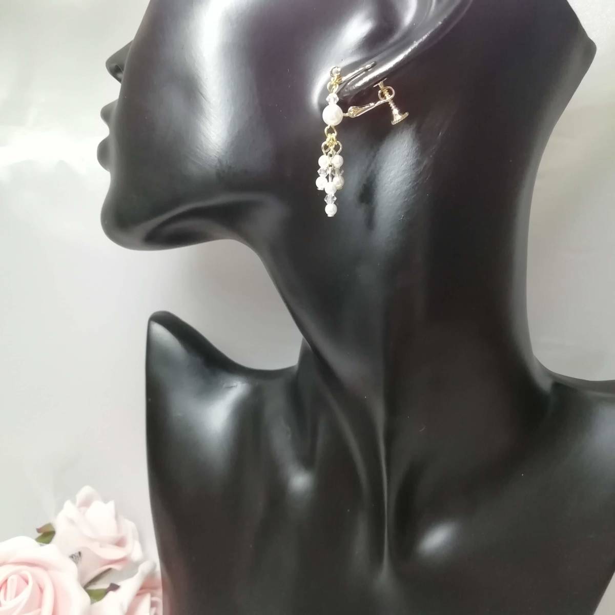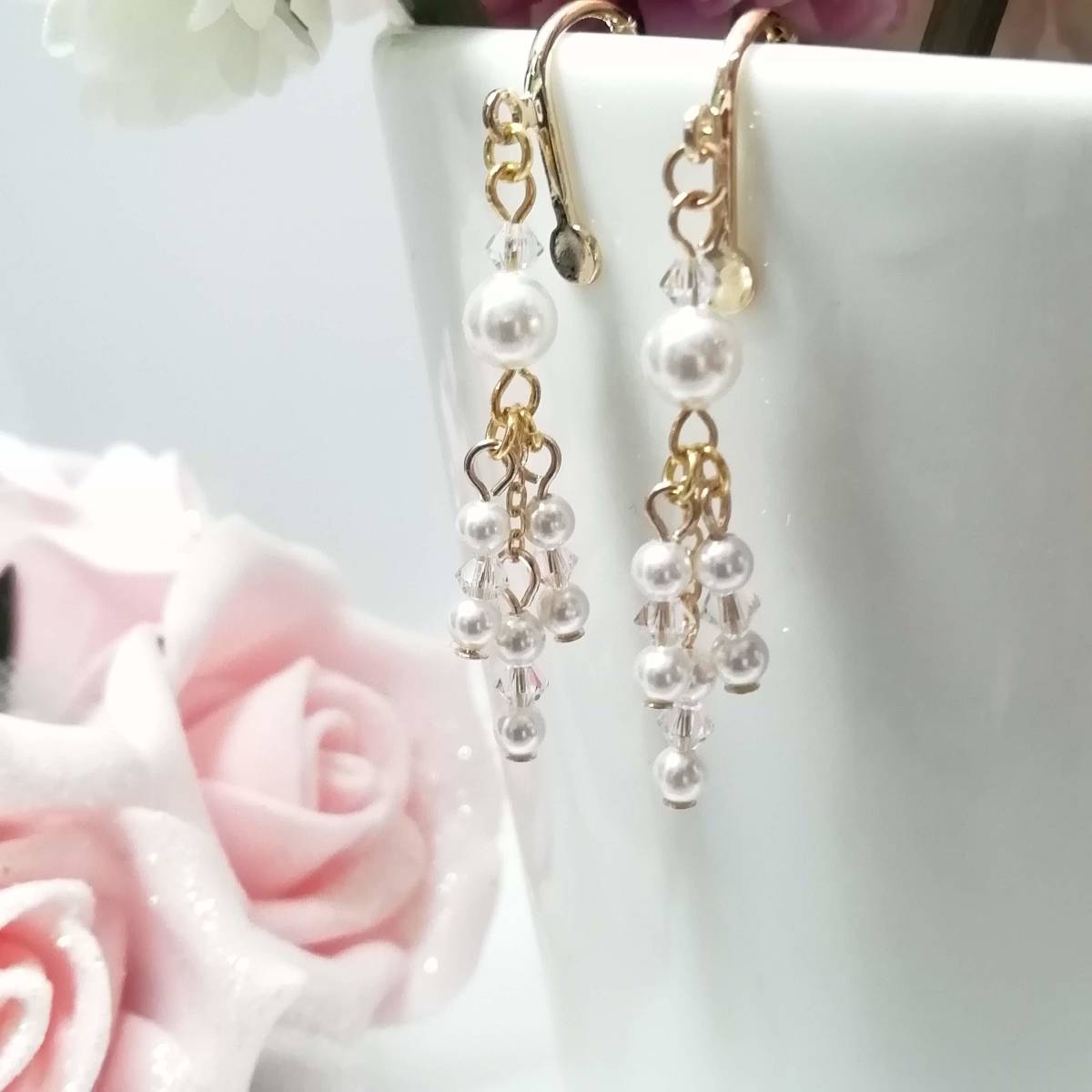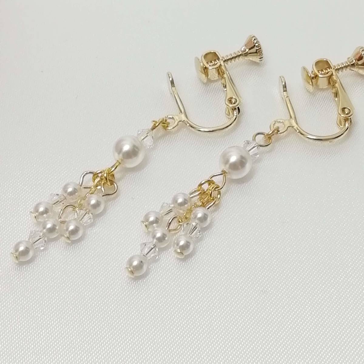 | ★商品内容★ スワロフスキーホワイトパール3連のハンドメイドイヤリング/ホワイト/ゴージャス/上品/ゴールド/短め/スワロフスキー/ブライダル/白/3連 スワロフスキーパールホワイトとゴールドを組み合わせた 上品で落ち着きある雰囲気のイヤリングです。・**・**。☆・**.・*。・** 短めサイズの3連のパールイヤリングで、 清楚で優しい女性らしさと豪華さを演出します**。・*。・*。・ 普段使いはもちろん、お出掛けにも、 ブライダルなど様々なシーンでお使い頂けるひと品です**。・*。・*。・ 【素材】 スワロフスキー5810パールホワイト(オーストリア製)5mm スワロフスキ5810パールホワイト(オーストリア製)3mm スワロフスキー5328クリスタル(オーストリア製)3mm 小粒チェーンゴールド カンより垂れ下がる長さは、約3.5㎝です。 Eー489 ★商品状態★ ・画像と実物の色味が多少異なる場合があります。 ・緩衝材(プチプチ等)を使用し、防水梱包でお届け致します。 ★注意事項★ ***~ご購入前に必ずお読み下さい~*** ***商品について*** *一点一点心を込めて作っておりますが、手作りなため多少の歪み等あるかもしれません。 手作りの味わいと、世界で一つだけの作品とお考えいただければ幸いです。 *デリケートな商品ですので、強く引っ張ったりすると破損する事もあります。 お取り扱いにはご注意ください。 *写真も完璧な色合いの表現にはなっていない場合もあります。 *基本イヤリング金具は跳ね上げ式ネジ付きを使って作成しています。 ご希望によりピアスへの変更も承っております【フックピアスへの変更(無料)/キャッチピアスへの変更(追加料金120円が必要です)】 ~ご注文の際にメッセージ欄よりお申し付けください~ 尚、金具変更のご希望が無い場合は、掲載された写真の金具にてお送り致します。 *金属アレルギーや化学物質アレルギーなどへの対応はしておりませんので、ご心配な方はご遠慮下さいますようお願い致します。 *永くご愛用頂くために、ご使用後は柔らかい布等で軽く拭いてください。 ***ご質問について*** *ご購入前にお願い致します。 日中は仕事をしておりますので、ご返事が直ぐに出来ない場合がございます。 出来る限り早い対応を心がけますが、ご了承ください。 また、発送までには、お振込み確認後、翌日の発送を心がけておりますが、仕事の都合により2~3日程かかる場合がございます。(その際にはナビにてご連絡いたします) お急ぎの場合は、極力対応いたしますが、場合によっては対応致しかねる事もあります。ご了承下さいませ。 落札後4日以内にお手続き、ご連絡が無い場合は落札者都合で削除致します。 発送日指定・ご入金の予定が1週間以上先をお考えの方は、入札の前に質問よりご連絡くださいませ。 予めご了承の上、ノークレーム・ノーリターンでお願い致します。 | |||