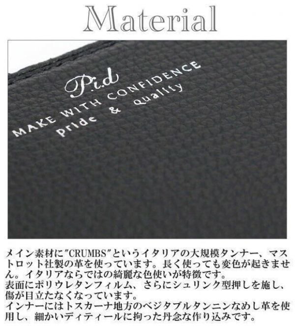 ■素材:牛革シボ型押し(イタリア産)×牛革(ヌメ革/イタリア産) 裏生地:コットン(ジャガード産)