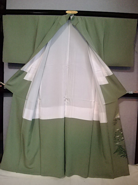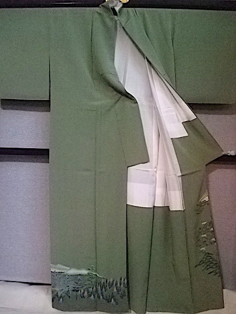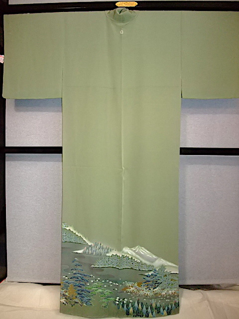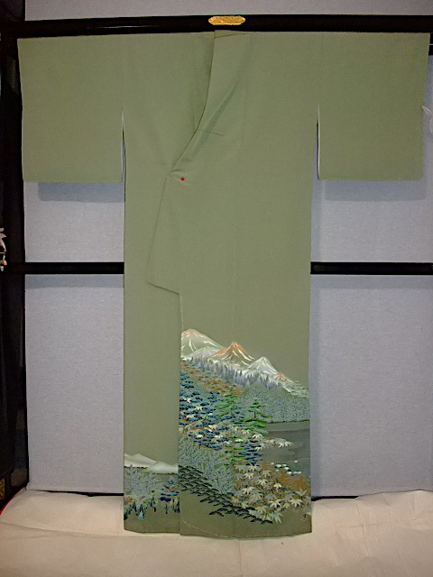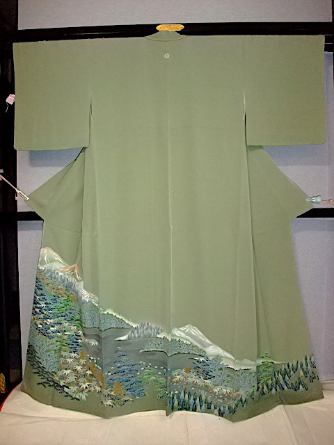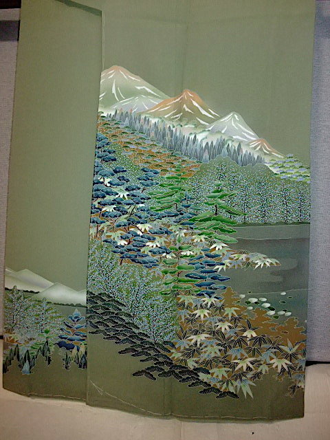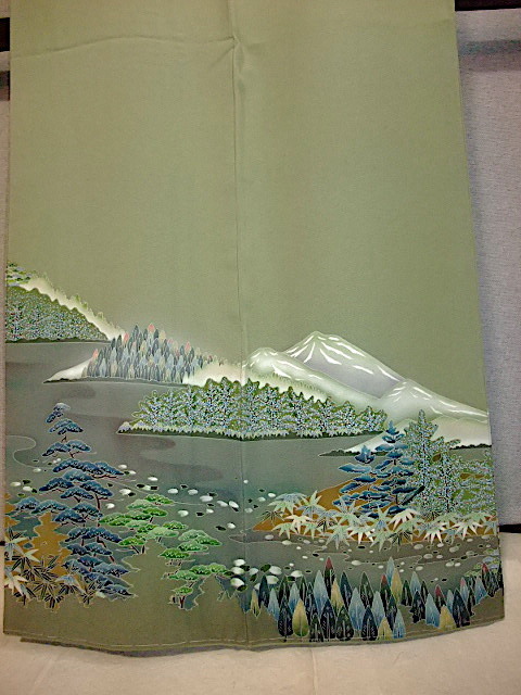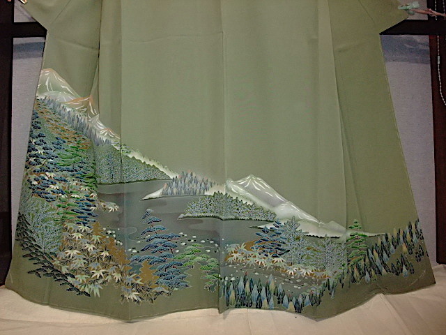 M732) 色留袖一ツ紋 草木山々 身丈155 裄63 袖丈46 前巾25,5 後巾30
