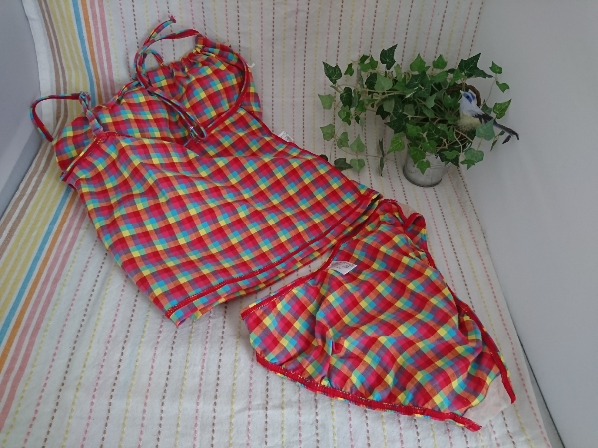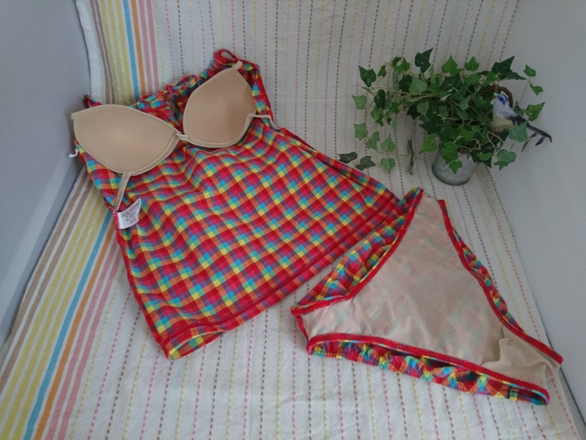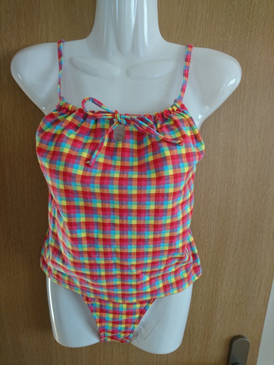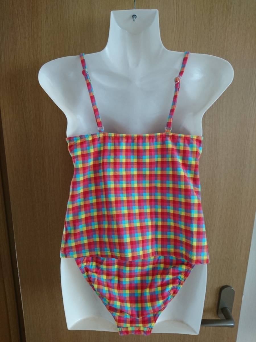 チェック柄のタンキニ水着2点セットです