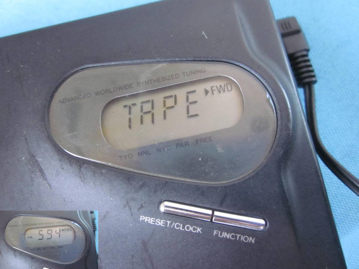 出品物:本体、イヤホン(社外品)、乾電池ケース、充電池(寿命切れ)、ACアダプター(ワールド対応、AIWA純正品)。