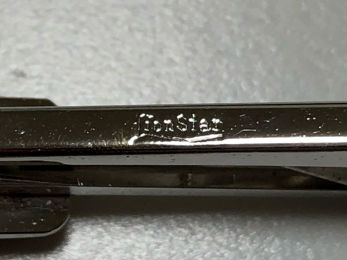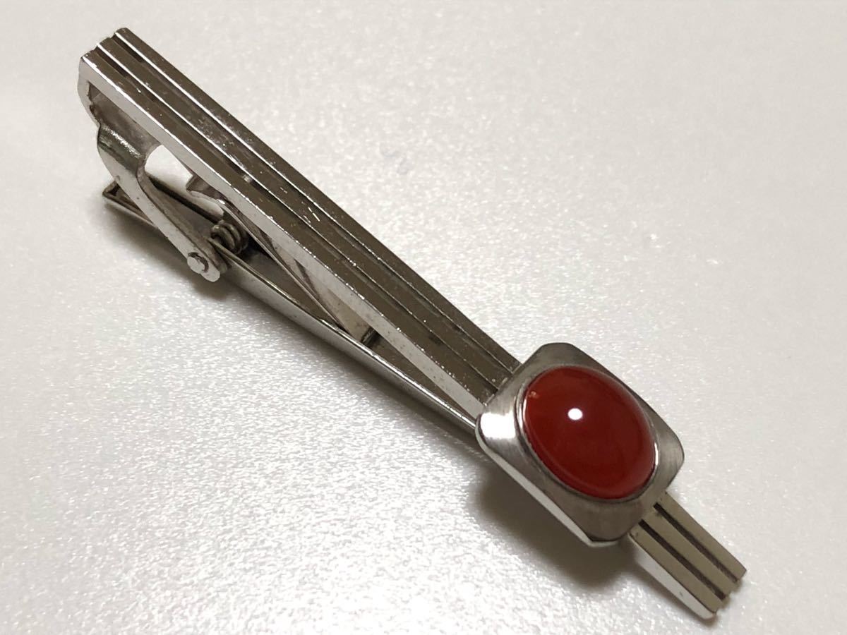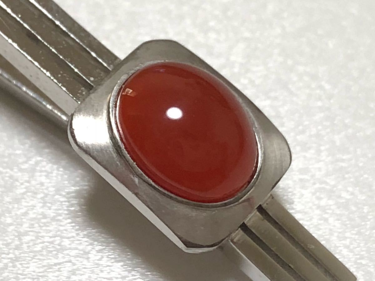 LionSterの本瑪瑙を使用した、デザインタイピンです。金属面に若干のくすみがあります。