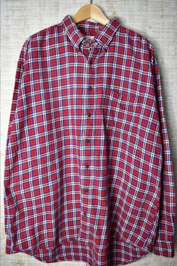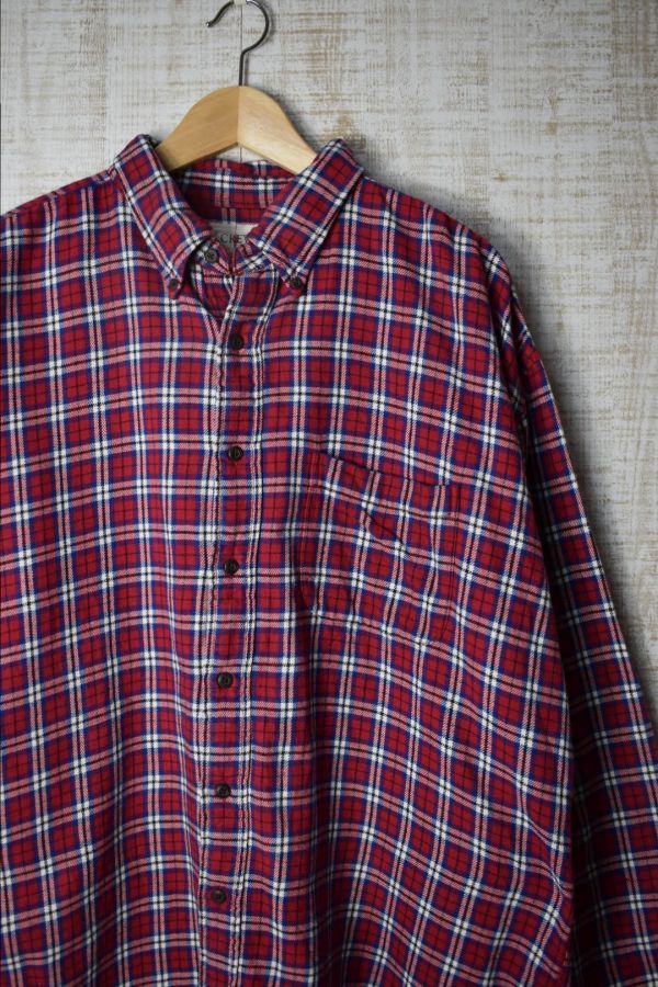 ●US USED 90年代 US古着 J.CREW 旧タグ Jクルー ジェイクルー ネルシャツ チェック レッド白ブルー【XL】