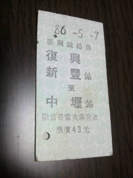 台湾鉄道硬券・復興 新豊→中リー(未使用)