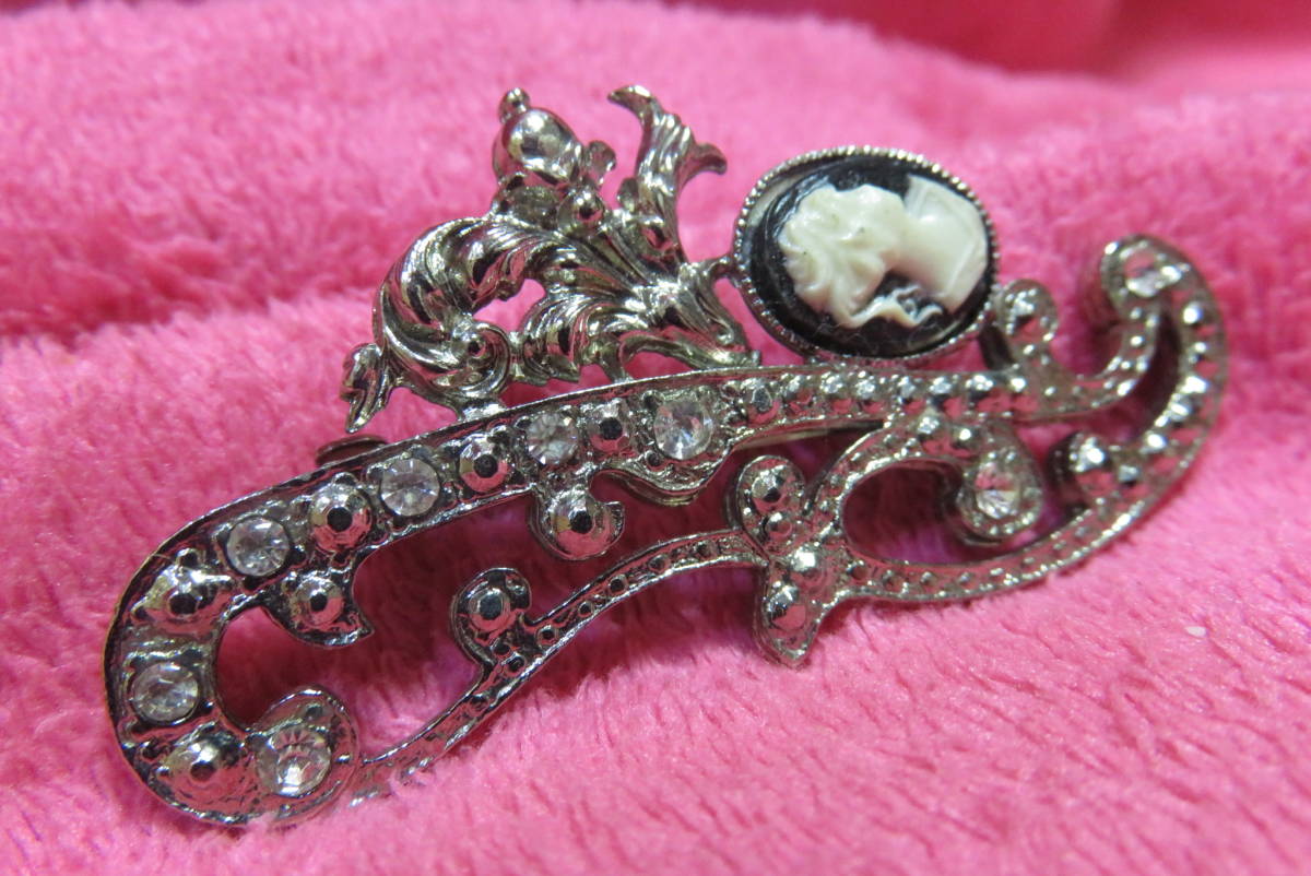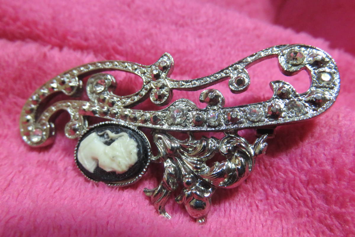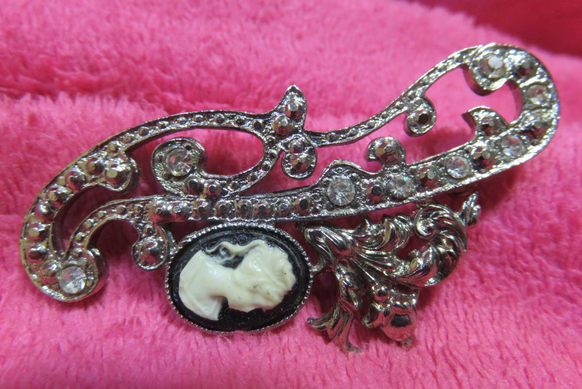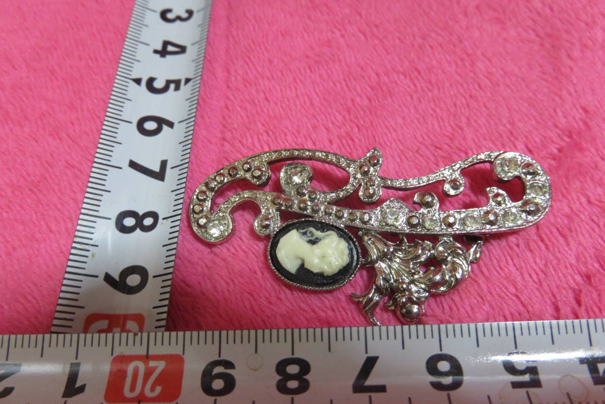 J6410   ブローチ  ラインストーン  アンティーク調  アクリルカメオ