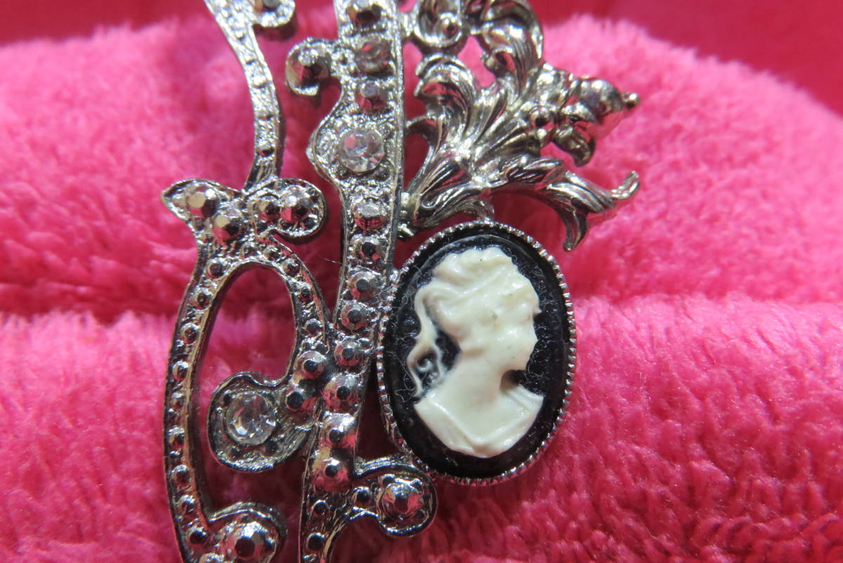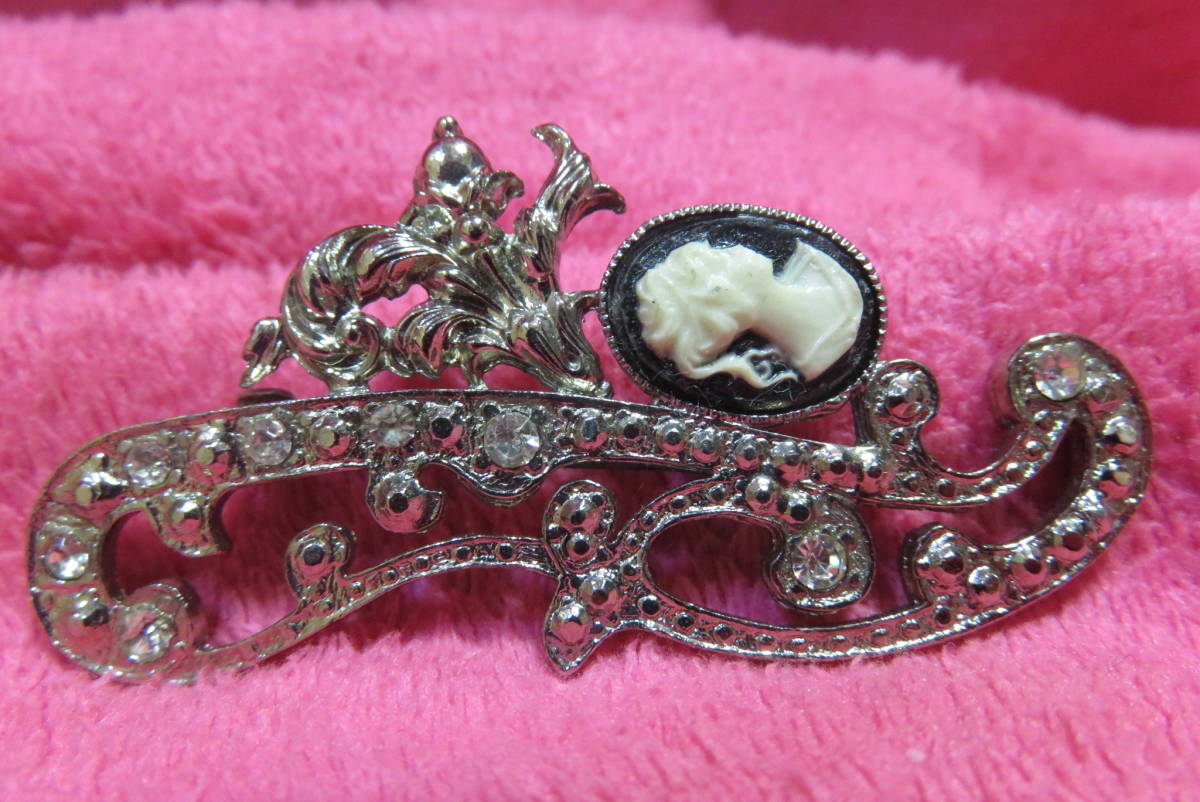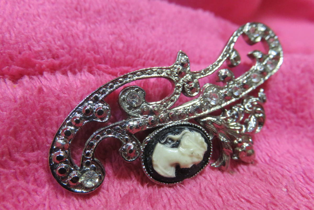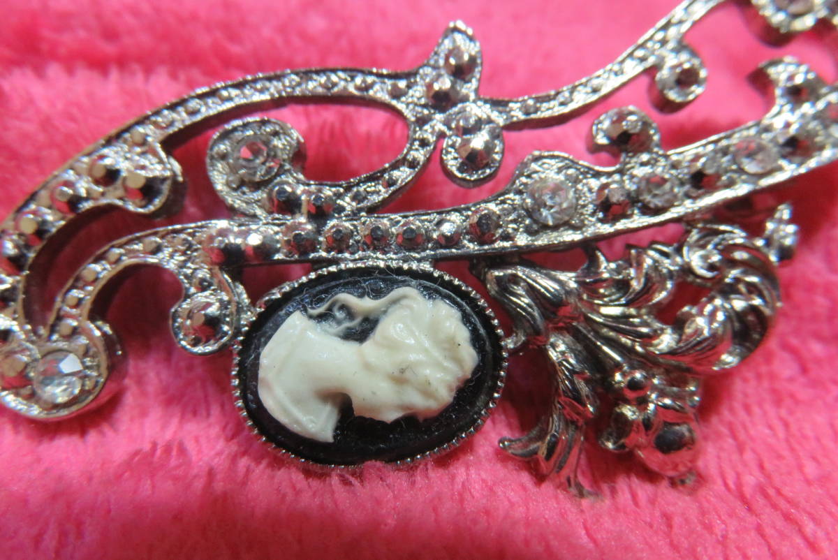 J6410   ブローチ  ラインストーン  アンティーク調  アクリルカメオ