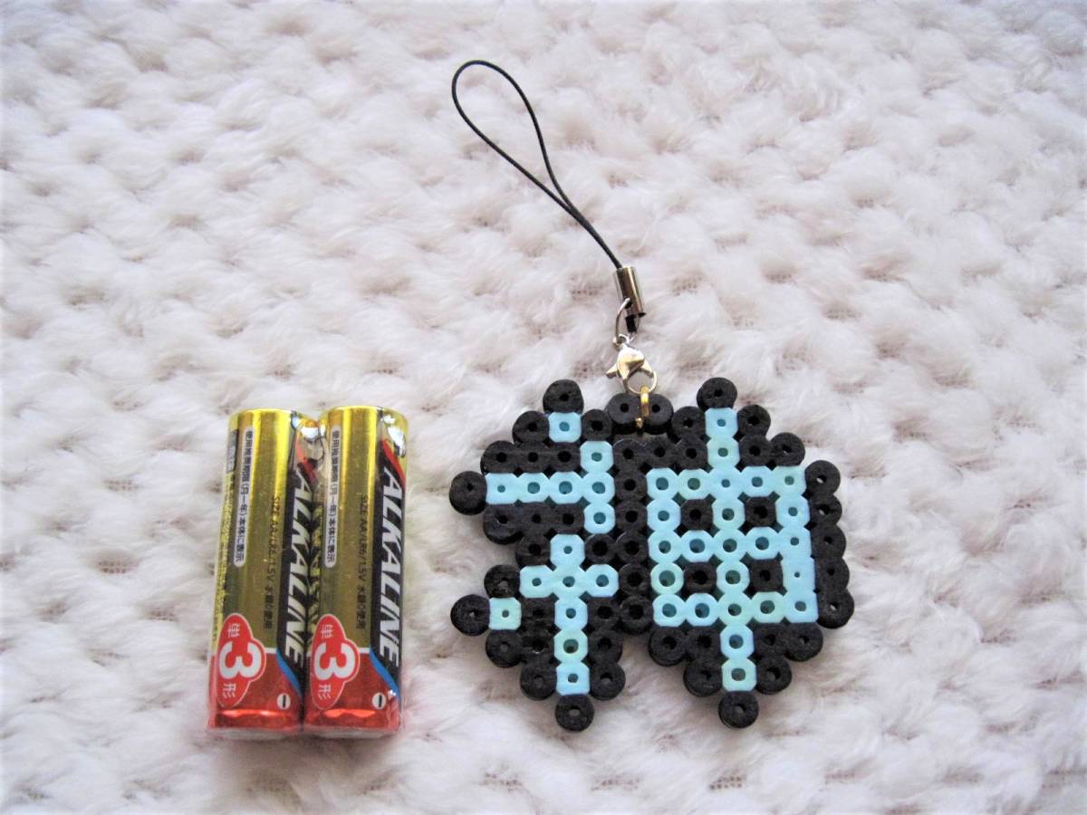 AM雑貨■神 水色 漢字シリーズ ストラップ アクセサリー 手作り アイロンビーズ ハンドメイド あゆまんじゅう。