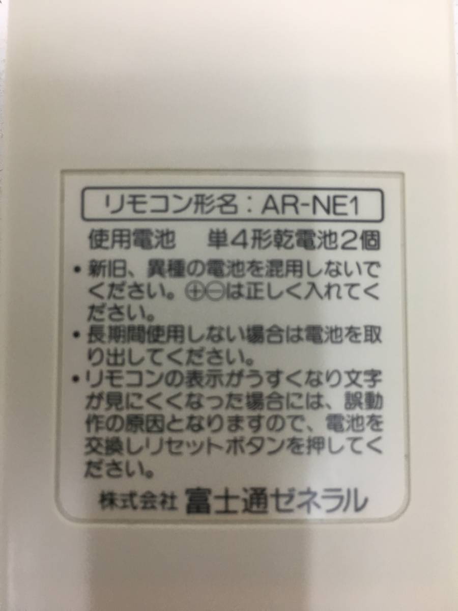 | 【A-2】 富士通ゼネラル エアコン リモコン AR-NE1 | |