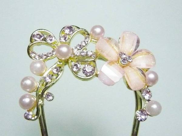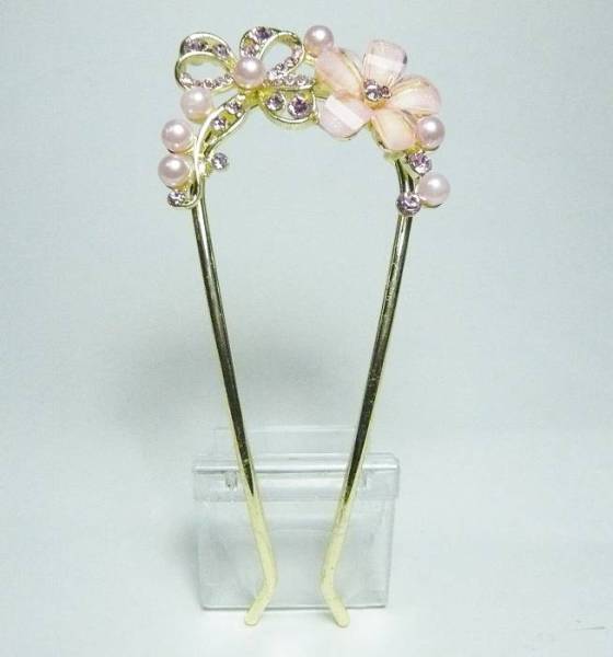パール ラインストーン 花 夜会巻き Uスティック ピンク