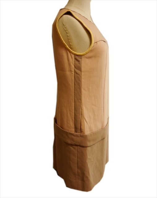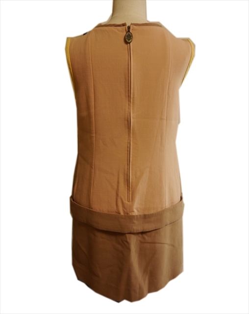 極上品 フォクシー ワンピース ノースリーブ ピンクベージュ系 40 バイカラー 本物鑑定済み