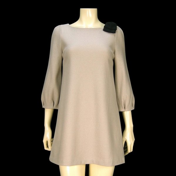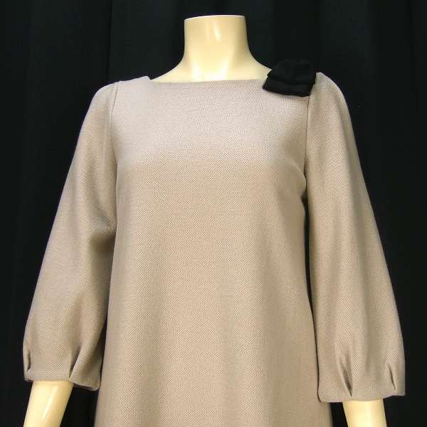 A 新品同様★Anatelier アナトリエ★アイボリー系*可憐リボン×パフ袖*優暖ウール100%*令嬢7分袖ワンピース★38(M*9号相当)