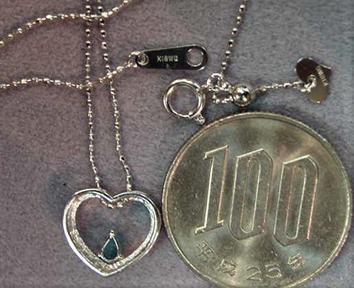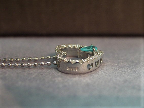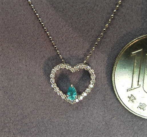 ♪【パライバ・トルマリン】小さい【ハート】K18WG・0.13c・Pt850:45㎝フリー・消費税・送料込み・新品・未使用・本物