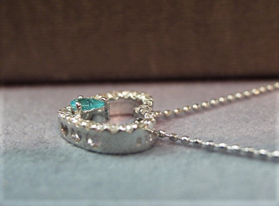 ♪現在、ブラジルのパライバ鉱山は、閉山されてしまい、【希少・レア・高価・貴重】になっている、【ブルー蛍光色】の、大人気の【天然:パライバ・トルマリン:0.13c】のペンダント・ネックレスです。【K18WG】製のハート型:ペンダント枠に留め、ハート全面にも、輝きの良い上質な【天然ダイヤモンド】を留めて、パライバを引き立てています。(注:ダイヤのカラット刻印が無いためダイヤのカラットは、分かりません。)