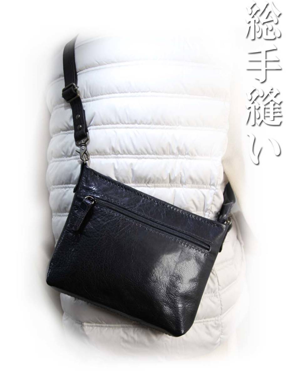 ご覧頂きありがとうございます。 素材は本革、制作暦ウン十年、長くご愛用いただけますように、一針一針心をこめて作り込んでお届けしております。 縫製部分は、手で穴を開け、2本の針を交差させて一針ずつ縫い上げる本格手縫いです。 コバ(革の断ち面)は、専用液を塗り重ねて磨き固めてあります。 ![]() |