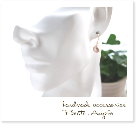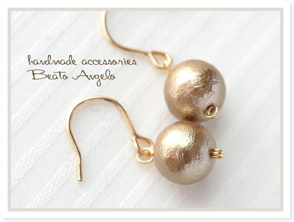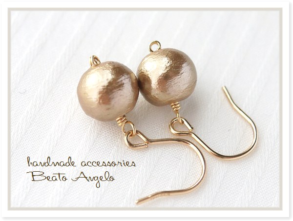 ◇◆+angelo+K14GF コットンパールの一粒ピアス(p-024)ベージュ 8mm シンプル