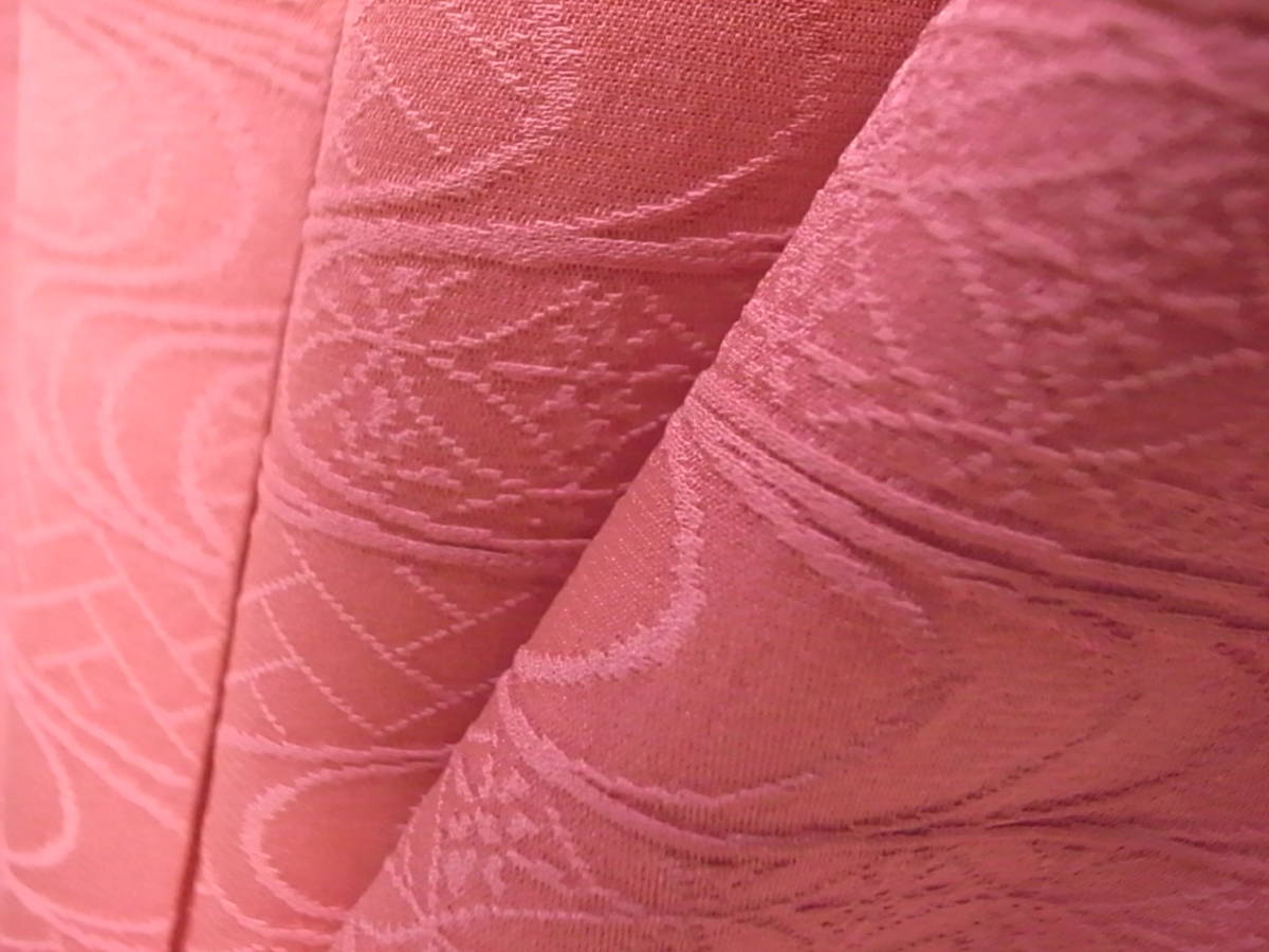 正絹紋意匠織ちりめん ローズ色地・生地柄生かし横流七宝柄模様