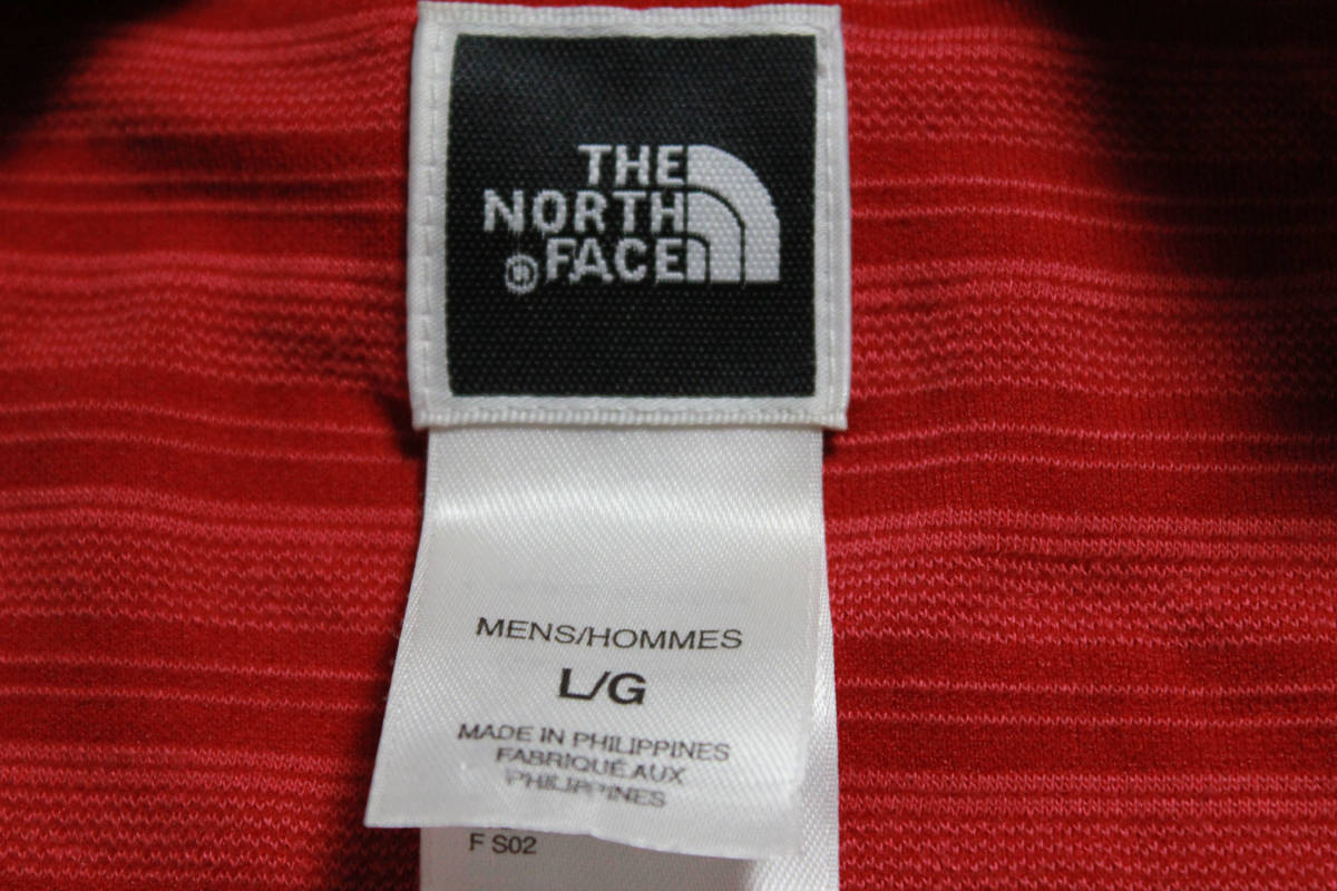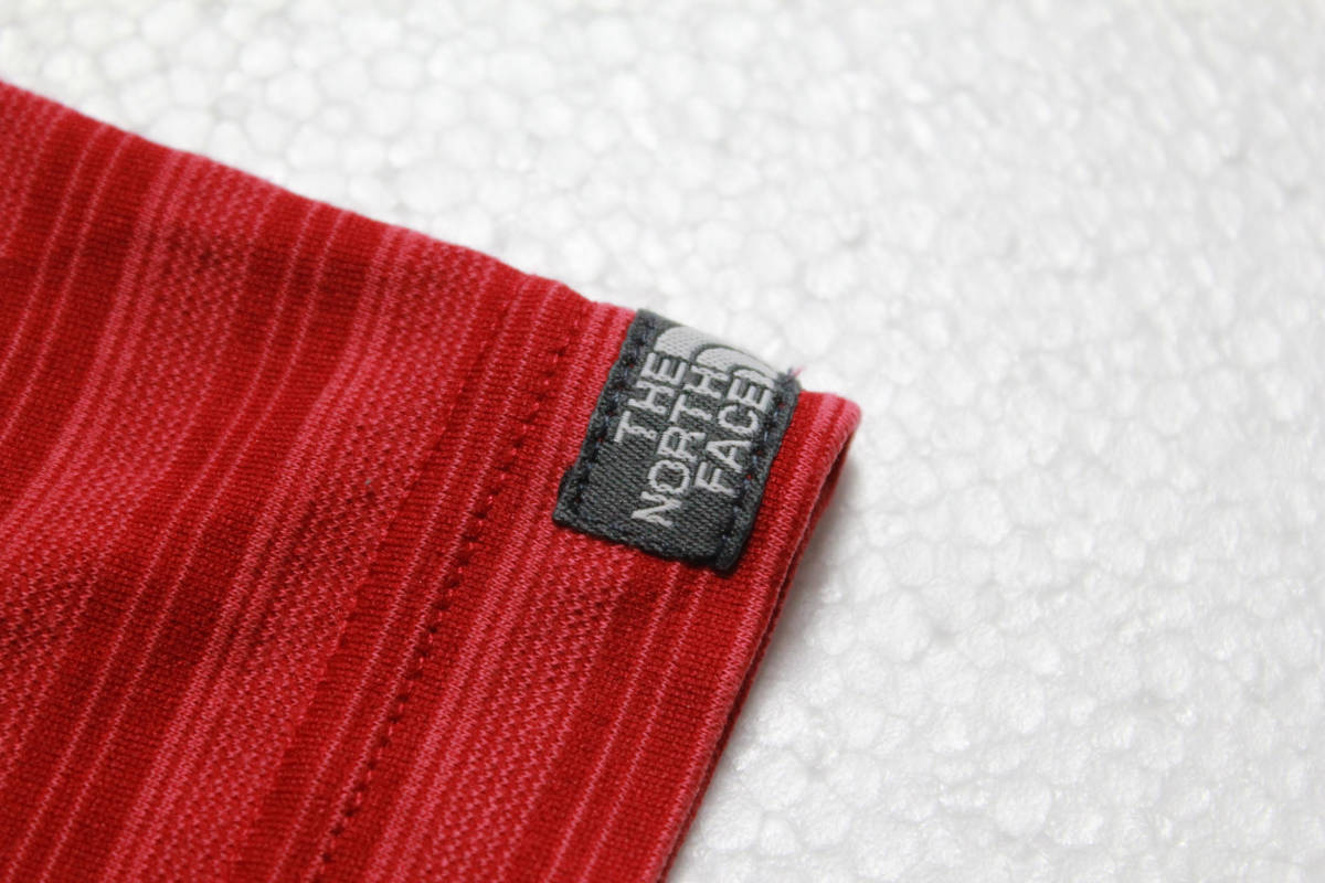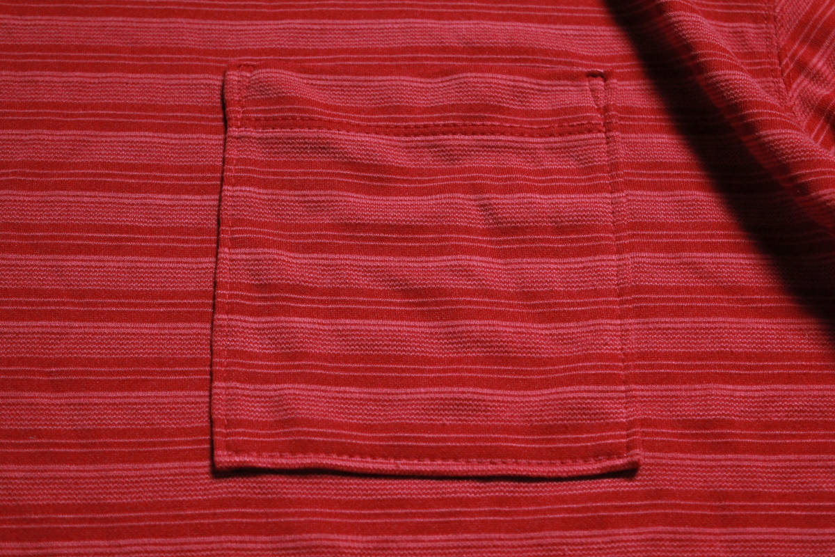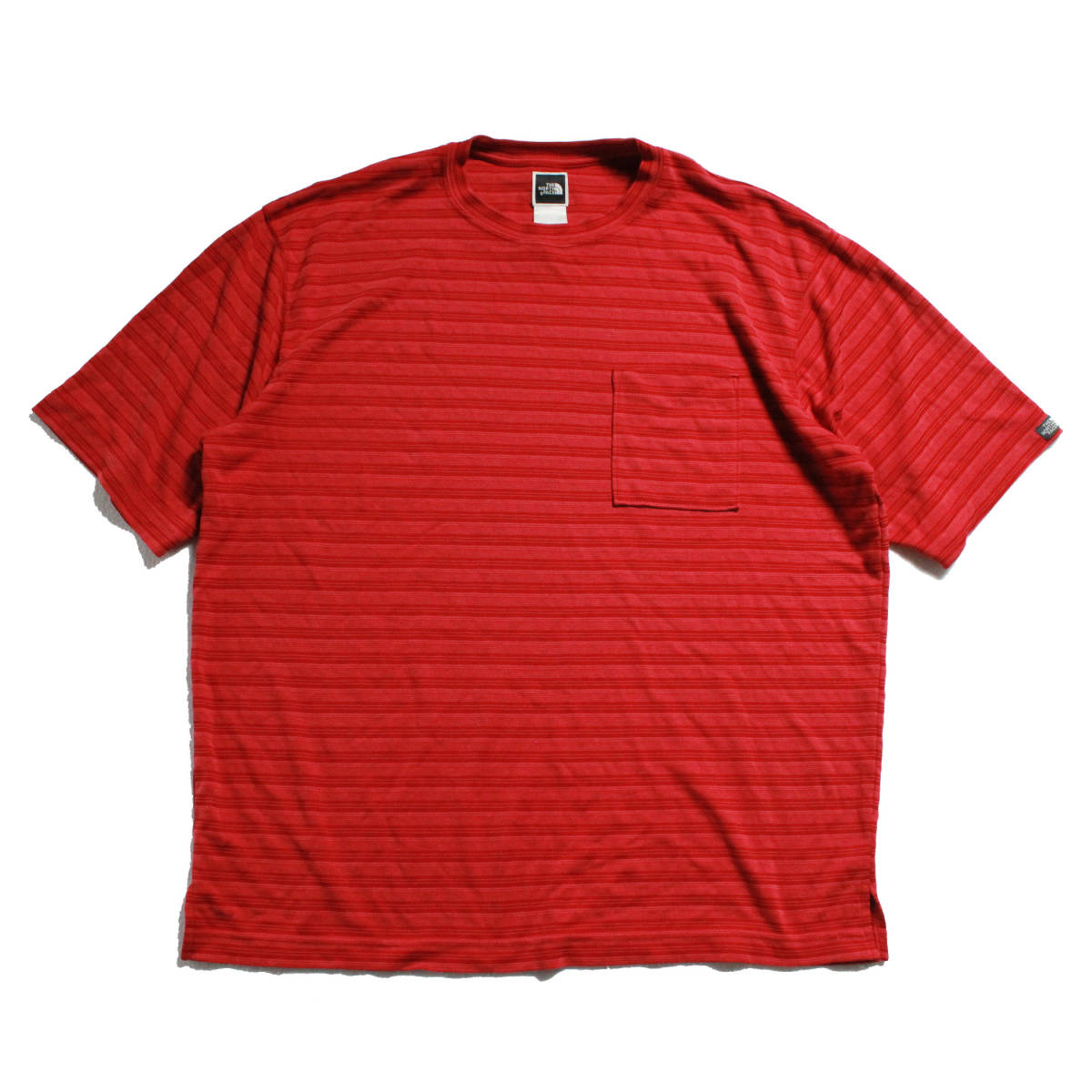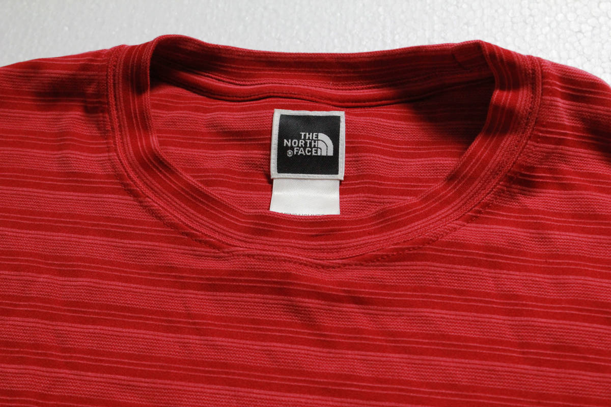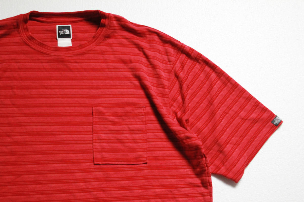 00'sノースフェイスボーダー柄ポケット付き半袖Tシャツ(L)ポケT赤系THENORTHFACE