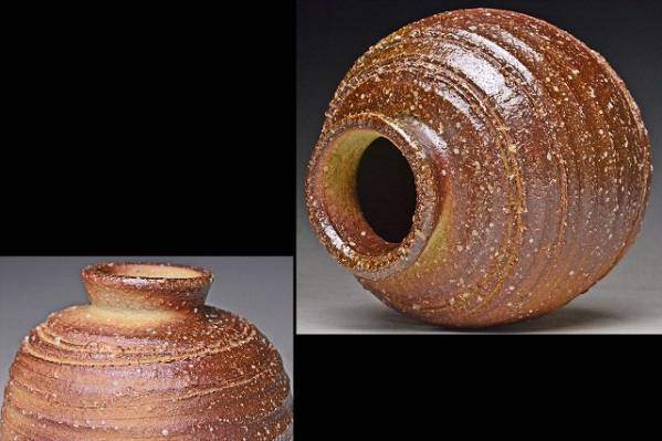 神奈川県 茅ヶ崎市 で 作陶されておられる 名工 星野亮斉 氏の 作品です。 力強い 轆轤目が 印象的な 逸品です。