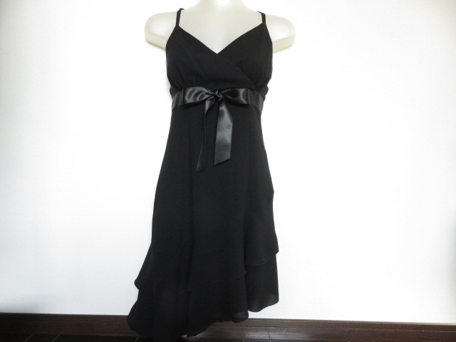 ■新品同様上質美品【INGNI】イング日本製高級シフォンフリルワンピースドレス ブラック【S】 o107