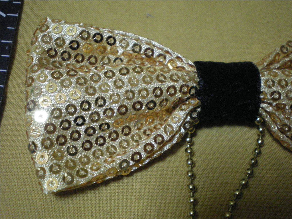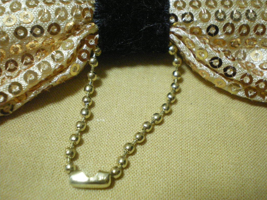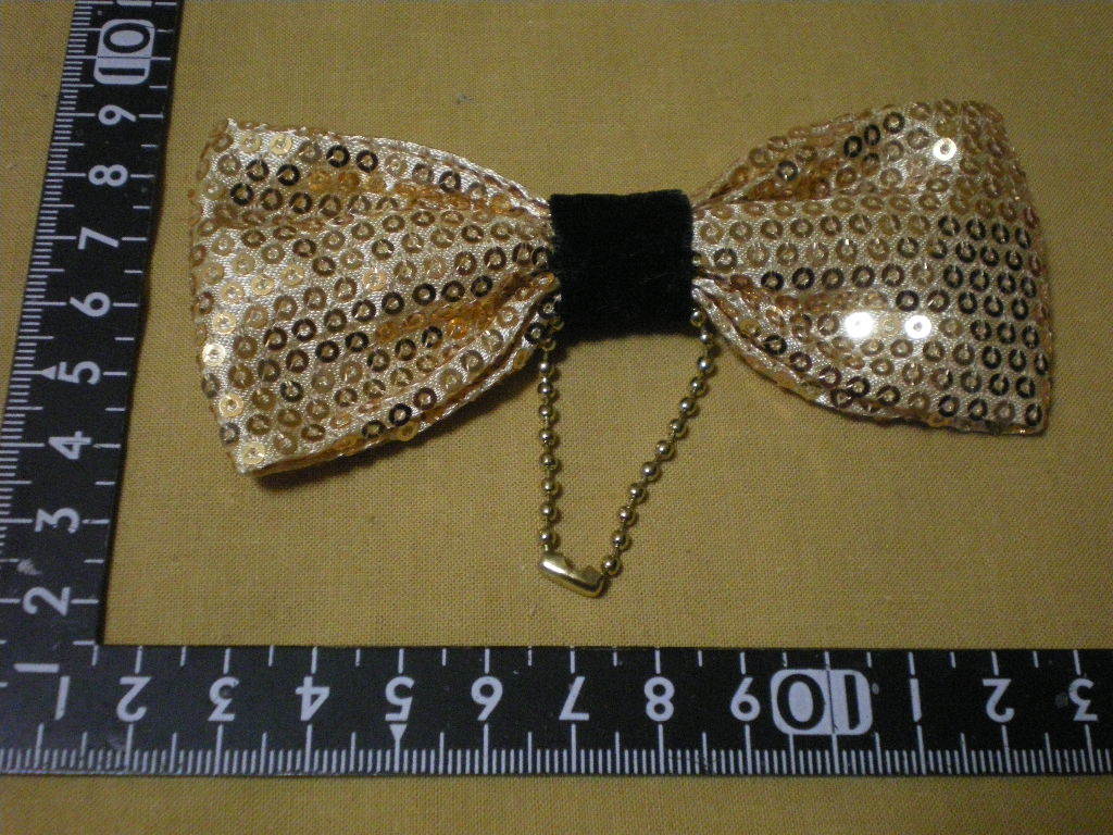 珍品フリマ・送料無料] 金色のスパンコールきらきら 飾り チェーン付リボン様 欠けなし 大きさ:全長11cm 最大幅 5cm 厚み1.5cm