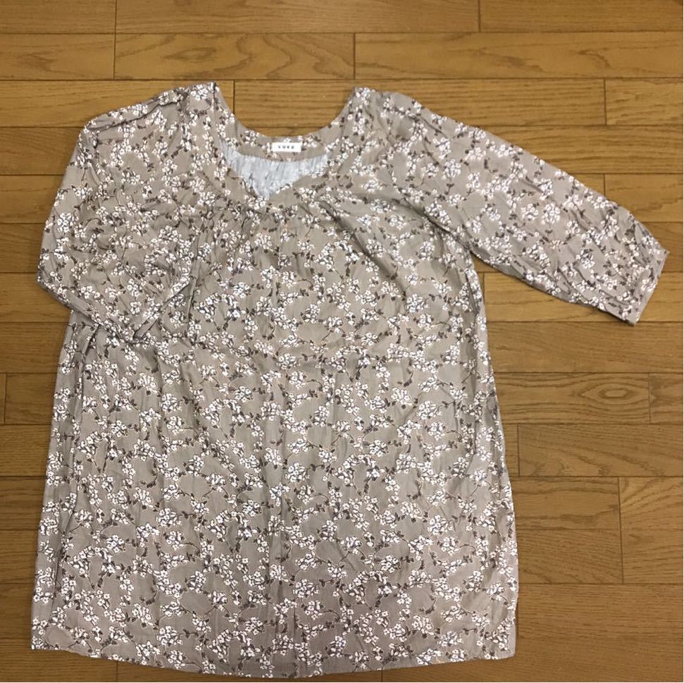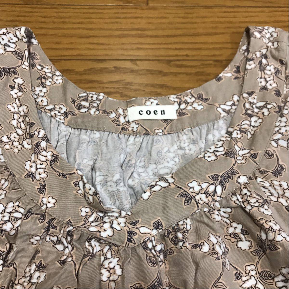 商品名:coen 七分袖 ベージュ 花柄 膝丈ワンピース