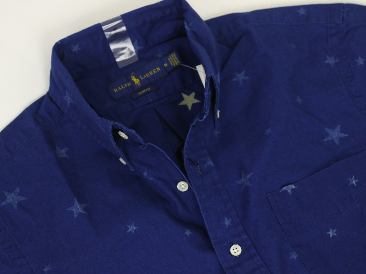 アクセス頂きありがとうございます。 こちらはアメリカ買付新品アウトレット ラルフローレンRalph Laurenの半袖ボタンダウンシャツ。 体に沿ったスリムなラインの、SLIM FIT。 インディゴ染めのコットン100%、星の柄を染め抜いた生地の裏側を使用。 ウォッシュ加工済み、左胸にポケット付き。 ラルフローレン定番のボタンダウンの半袖シャツです。 MADE IN PHILIPPINES 100% COTTON EXCLUSIVE OF DECORATION (US) S 着丈 (cm)73.5 身幅 (cm)50 肩幅 (cm)44.5 袖丈 (cm)22 *サイズは慎重に計測しておりますが、計測方法や商品の材質、 個体差で誤差が出ることがございますのでご了承ください。 アウトレット理由 日焼け跡があります。 0104406 その他、多数出品しております。 こちらもご覧下さい |