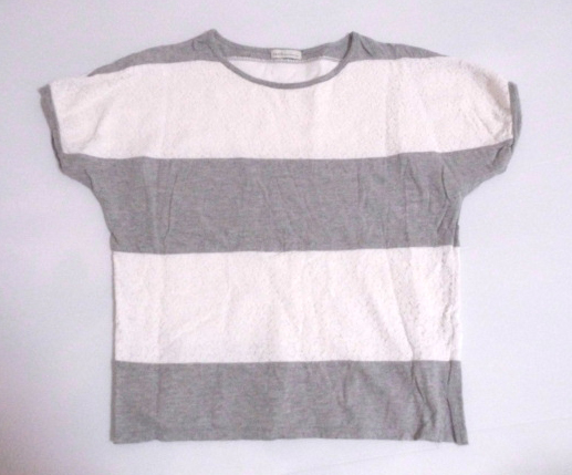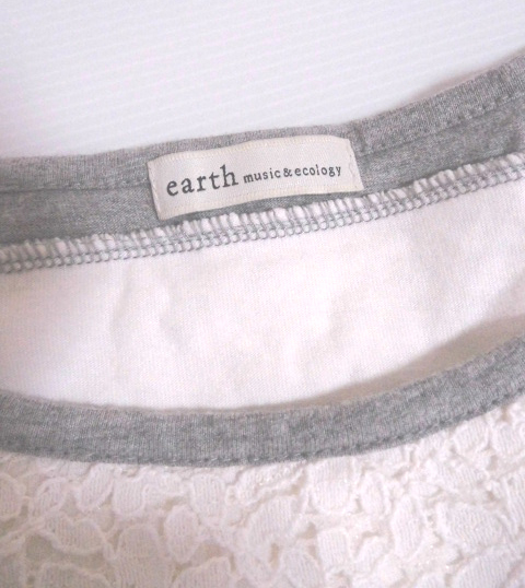 お得♪ 即決有 earthmusic&ecology アースミュージック&エコロジー 素敵~♪ グレー×白花柄レース トップス F 〒320