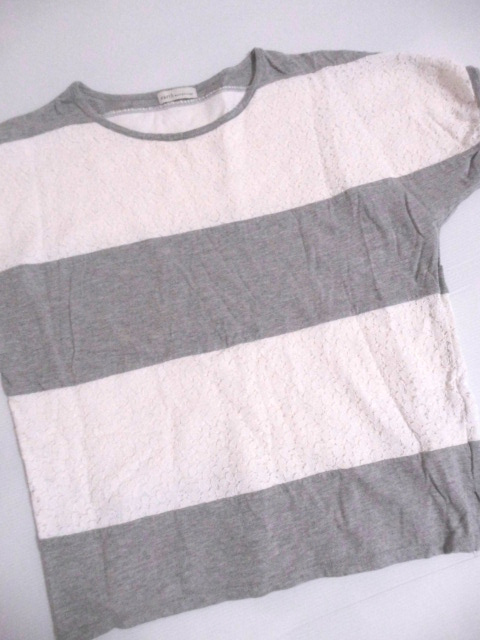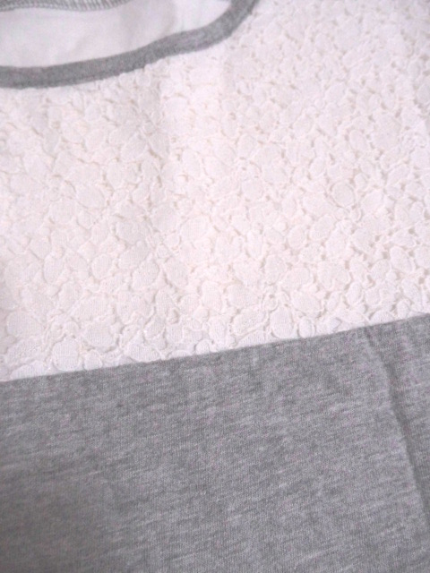 earthmusic&ecology アースミュージック&エコロジー 素敵~♪ グレー×白花柄レース トップス F