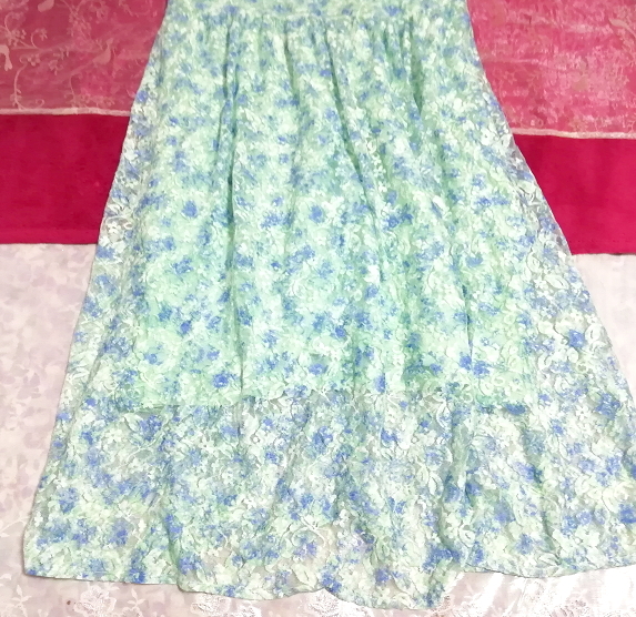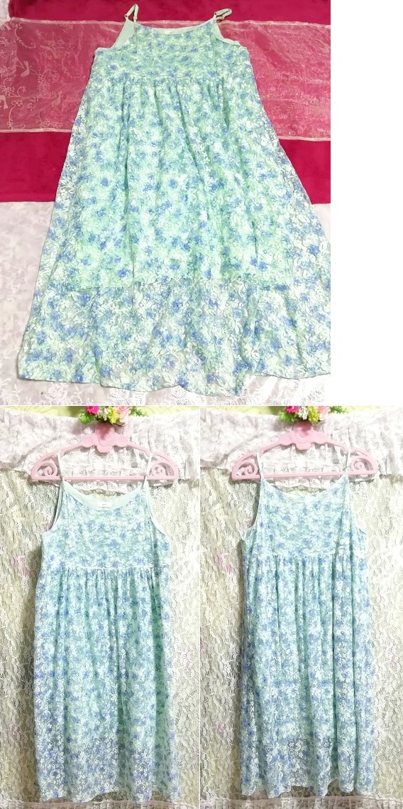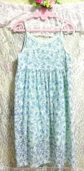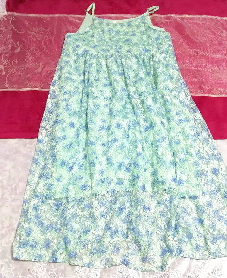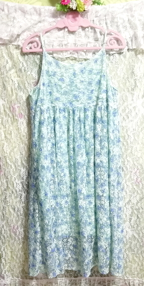 水色グリーンレースネグリジェキャミソールワンピース Light blue green lace negligee camisole dress