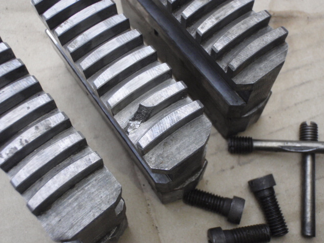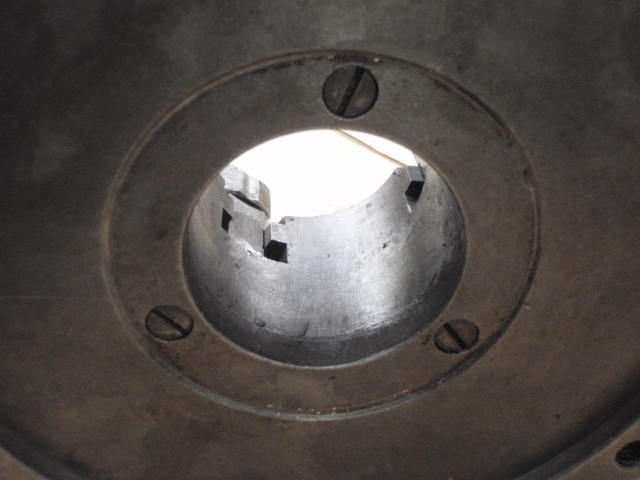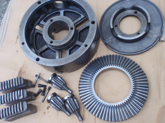 旋盤チャック 9吋 230mm 分解、清掃済み 是非ご活用ください。宜しくお願いします。 爪の動きですが、一番外側から中間位までがシブイです。 画像のように欠けているところがあります。 |