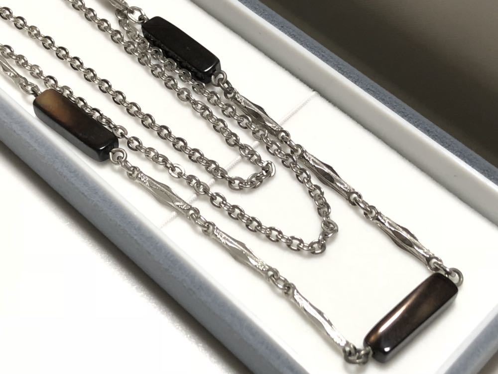 黒蝶貝を使用した、3連ロングデザインネックレスです。